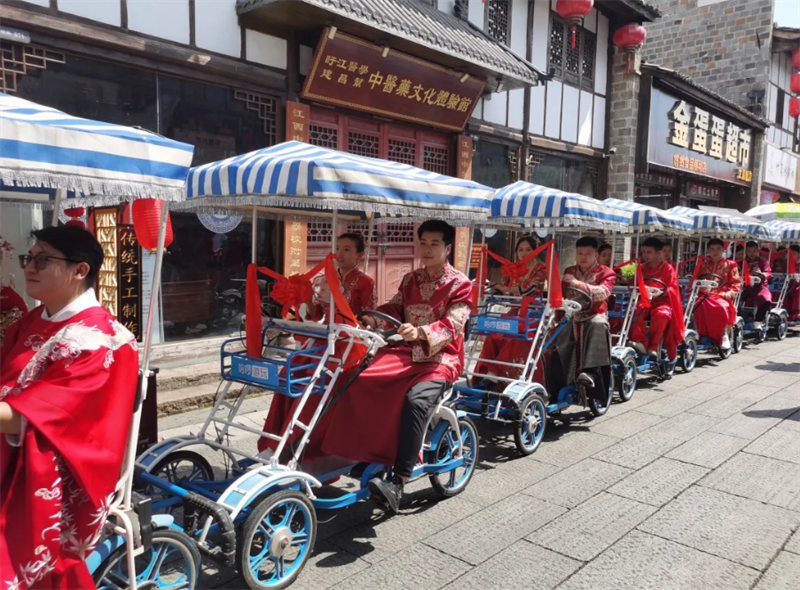 在黎川古城景区,一场特殊而又充满意义的集体婚礼——“情系古城·缘定黎川”2024年黎川县集体婚礼举行,来自该县各行各业的16对新人参加了婚礼。婚礼现场,新人潘俊、曾丽分享了他们的感受:“作为年轻人,我们要抵制高价彩礼,反对攀比之风,倡导文明新风。在婚姻里夫妻之间要懂得满足和珍惜,真情才会长久,相信我们一定会幸福的。”