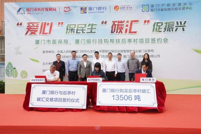 2022年11月,厦门银行通过厦门产权交易中心购买后亭村13506吨农业碳汇,抵消2021年度全行经营过程产生的碳排放,为后亭村创收13.5万元。(厦门银行供图)