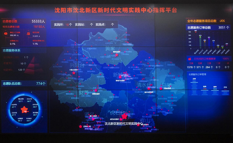 图为沈阳市沈北新区新时代文明实践中心志愿服务五维智能运行管理系统示意图(9月19日摄)。新华网发(安呈浩摄)