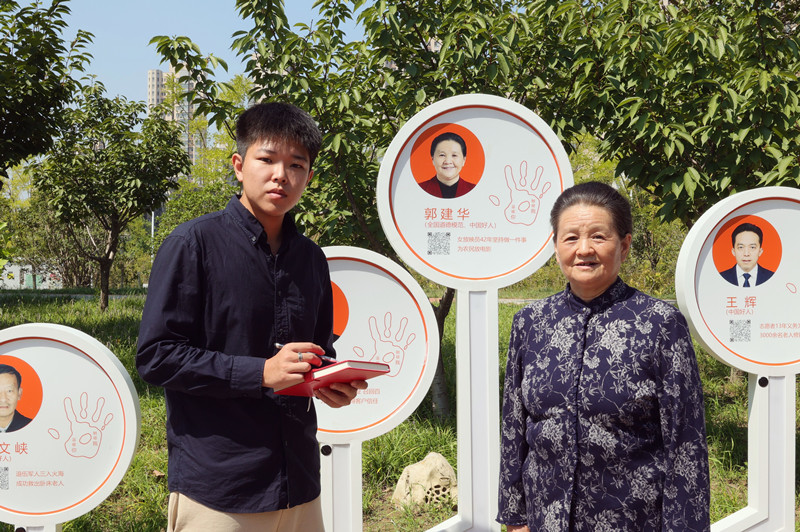郭建华在开封好人主题公园接受采访。图片来源:开封市文明办