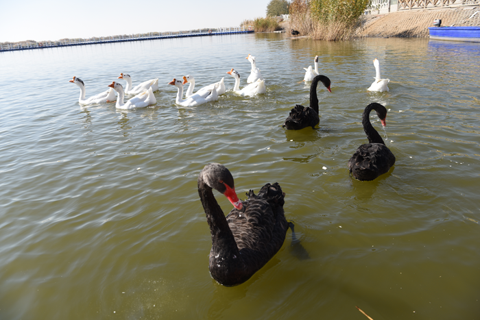这是10月21日拍摄的南海湿地公园内的天鹅。(包头市委宣传部供图)