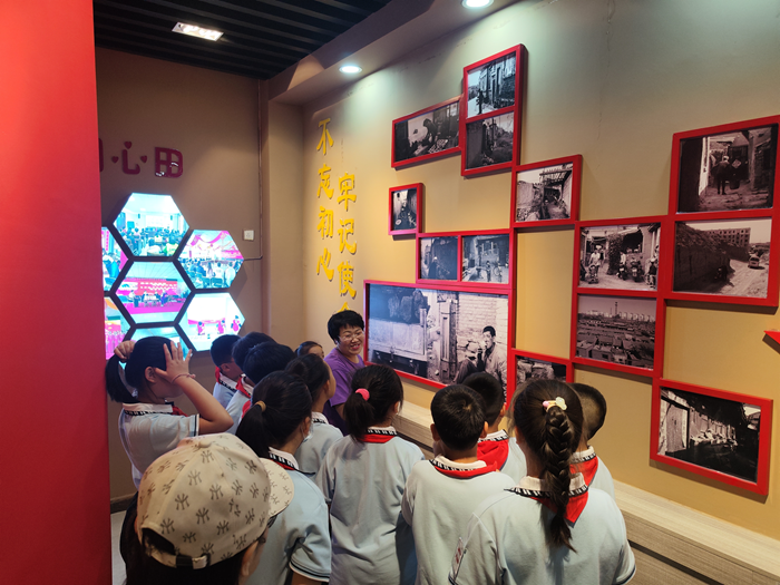 10月21日,东河区安居社区新时代文明实践站的工作人员正在为学生们讲解。(包头市委宣传部供图)