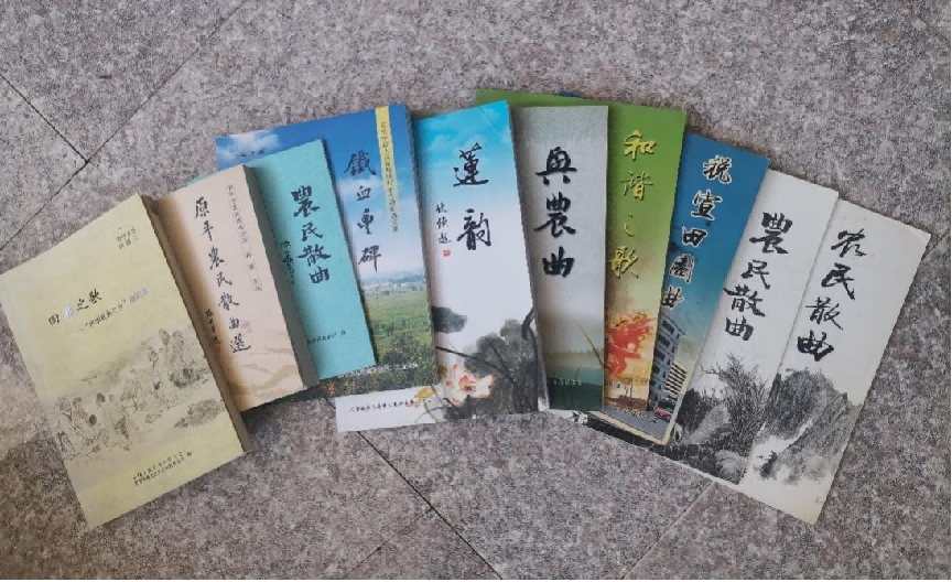 近年来,在退休教师王文奎的努力带动下,农民作者的散曲创作热情空前高涨。十余年来,散曲社陆续自费编辑出版了《兴农曲》《铁血丰碑》《农民散曲选》等10多部诗歌散曲书刊,免费发放供群众阅读;创作散曲4万余首,在省级以上书报刊物发表4000余首;利用现代网络创办微刊,发表作品300余期;喷绘展板300余幅,在各乡村农贸集市、戏场、庙会、婚庆等场地展出宣讲200余场次,受众达2万余人。