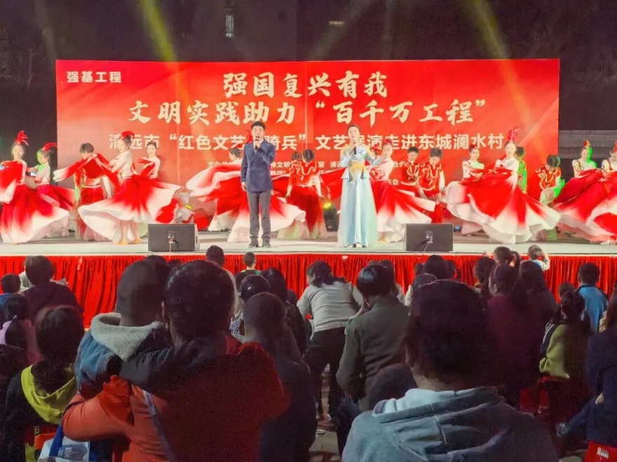 2025年2月28日晚,“强国复兴有我 文明实践助力‘百千万工程’——清远市‘红色文艺轻骑兵’文艺展演”在东城街道澜水村举行。